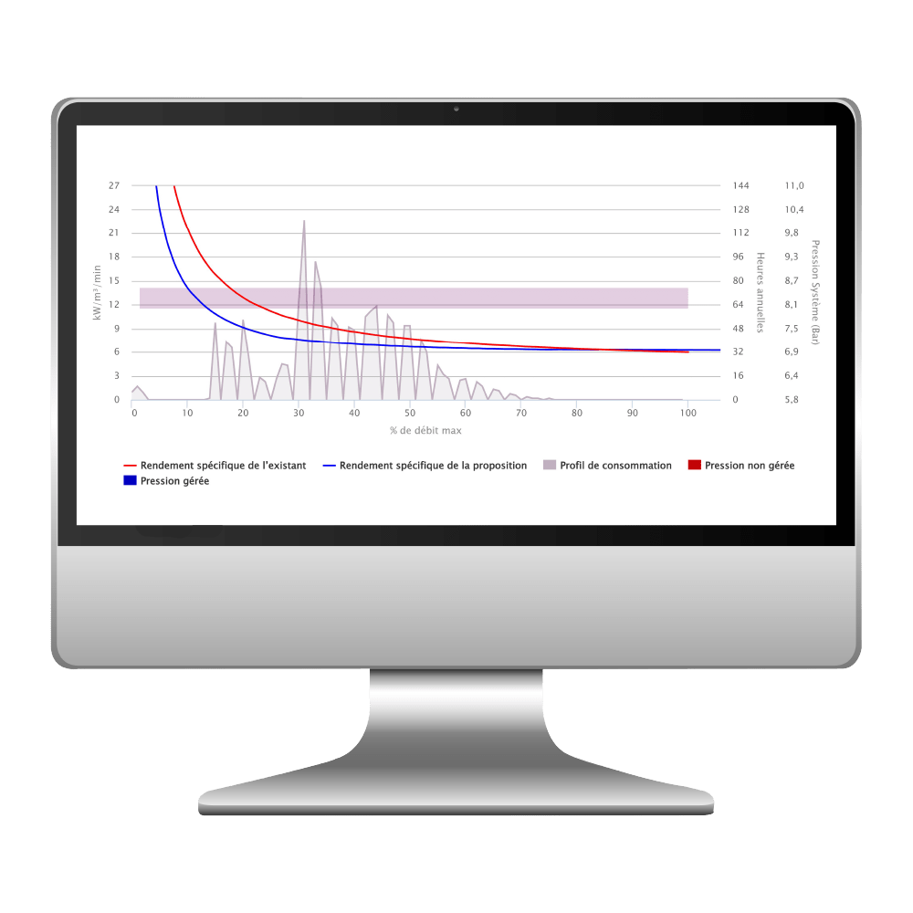 Chaque audit réalisé avec MAC3 AuditAir fournit une vision claire et précise du comportement énergétique du système d’air comprimé.